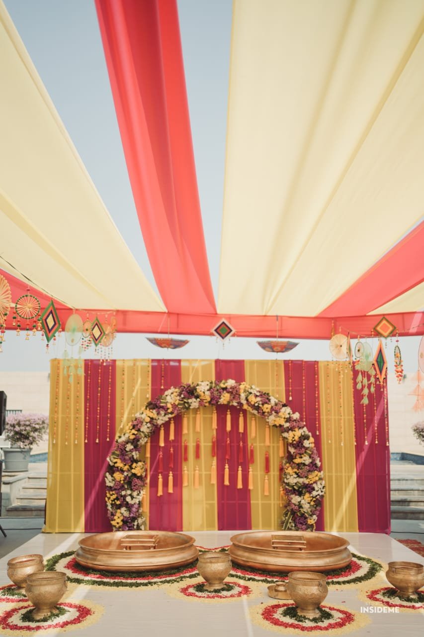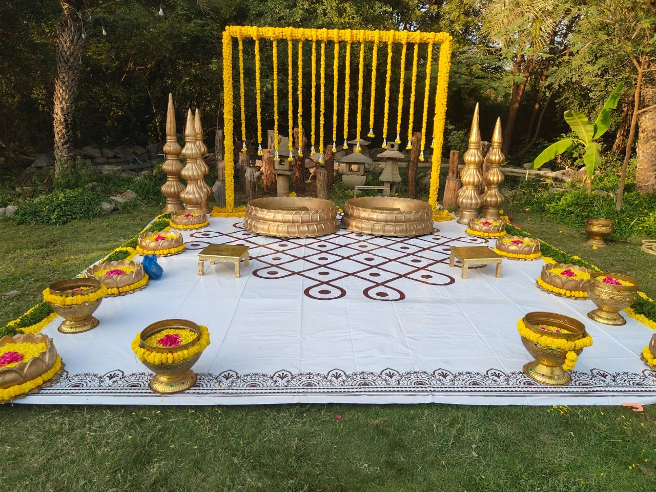 Traditional haldi ceremony with marigold-themed décor, family coordination, scheduled photography sessions, and efficient ritual flow managed professionally.